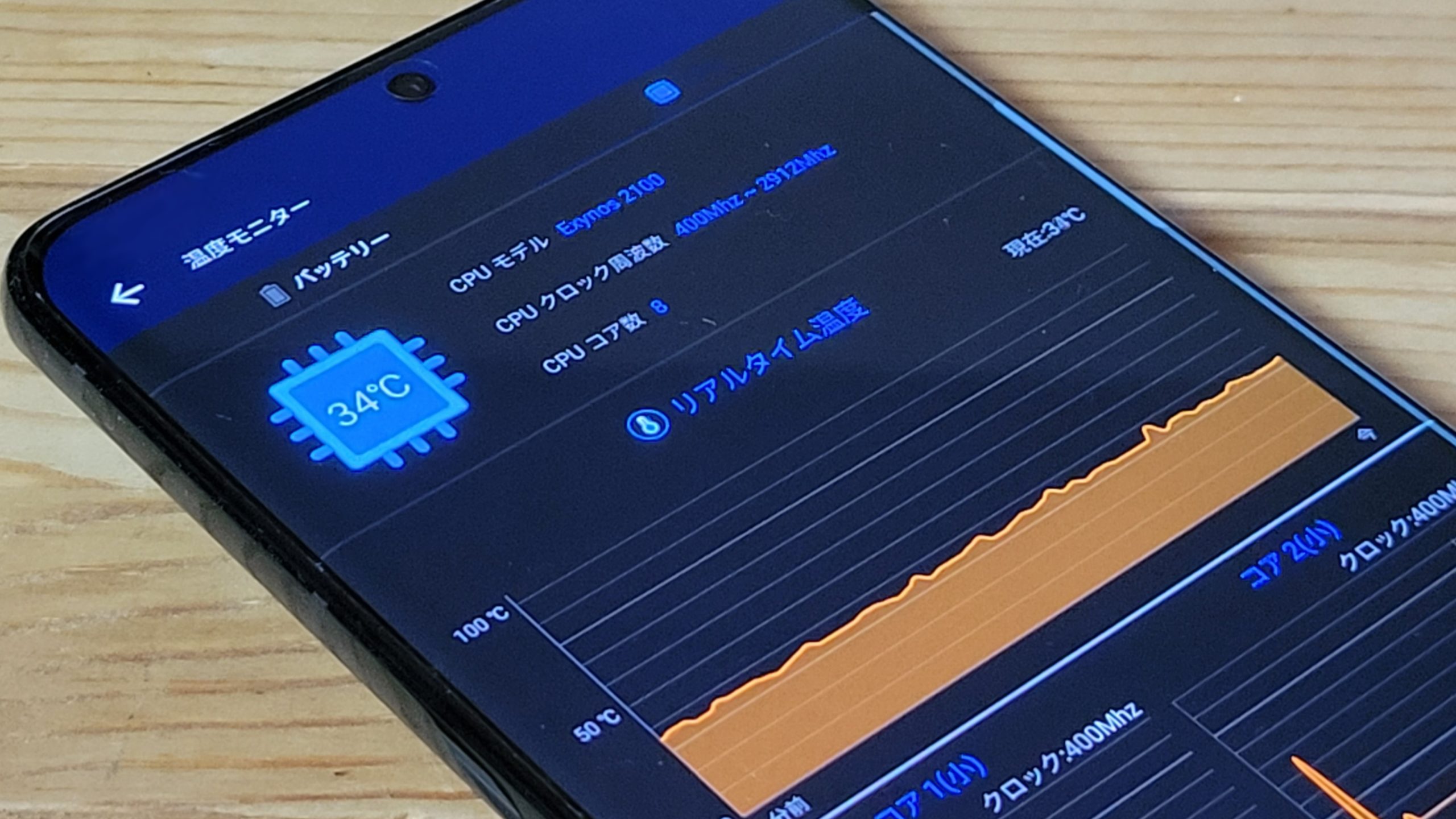 「Snapdragon 888が爆熱である」といった噂が絶えない中、Galaxy S21/S21+/S21 UltraといったS21シリーズで50℃近くまで本体温度が上昇するといったような報告はあまり耳にしません。