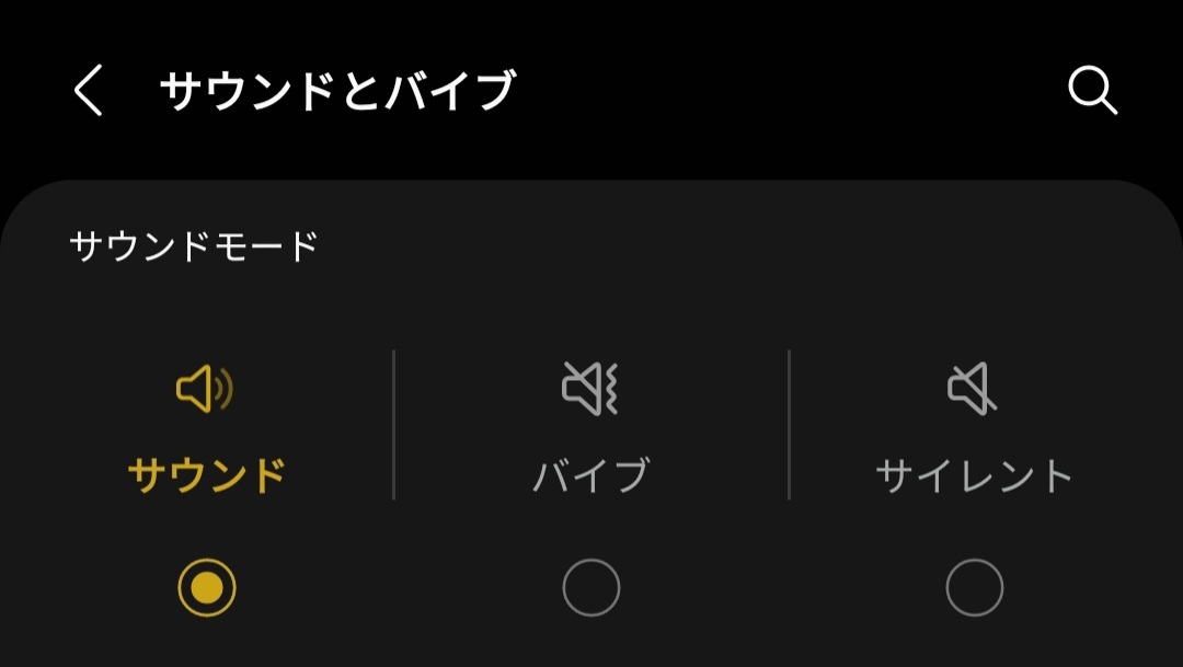 デフォルト設定のGalaxyでは、「サイレント」や「バイブ」といった「サウンド」以外のサウンドモードを適用すると、アラーム音が鳴らないようになっています。
