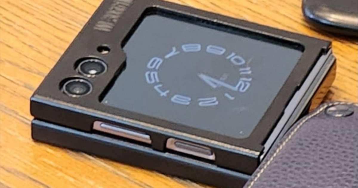 カバーが装着されていますが、カメラの配置やカバーディスプレイの切り欠きから、Galaxy Z Flip5と推定されます。